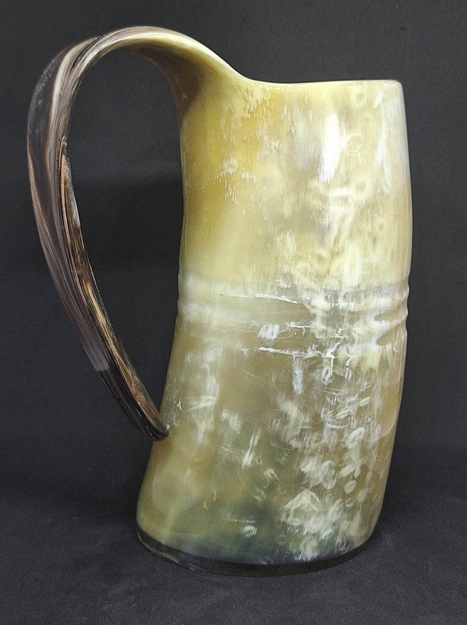 Drekkihorn framleitt úr oksa horni, kann nýtast til kaldar og heitar drykkir.
