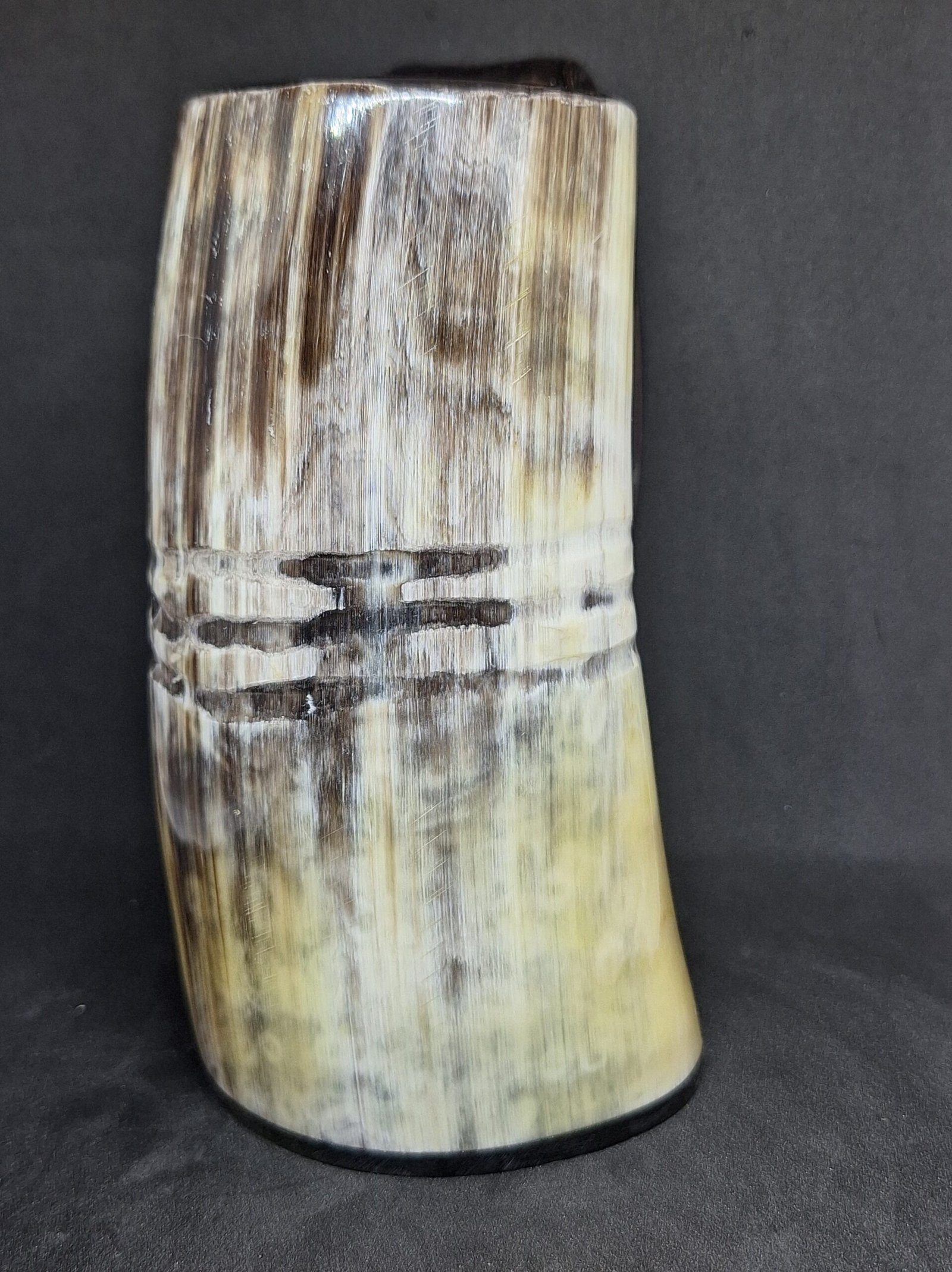 Drekkihorn framleitt úr oksa horni, kann nýtast til kaldar og heitar drykkir.