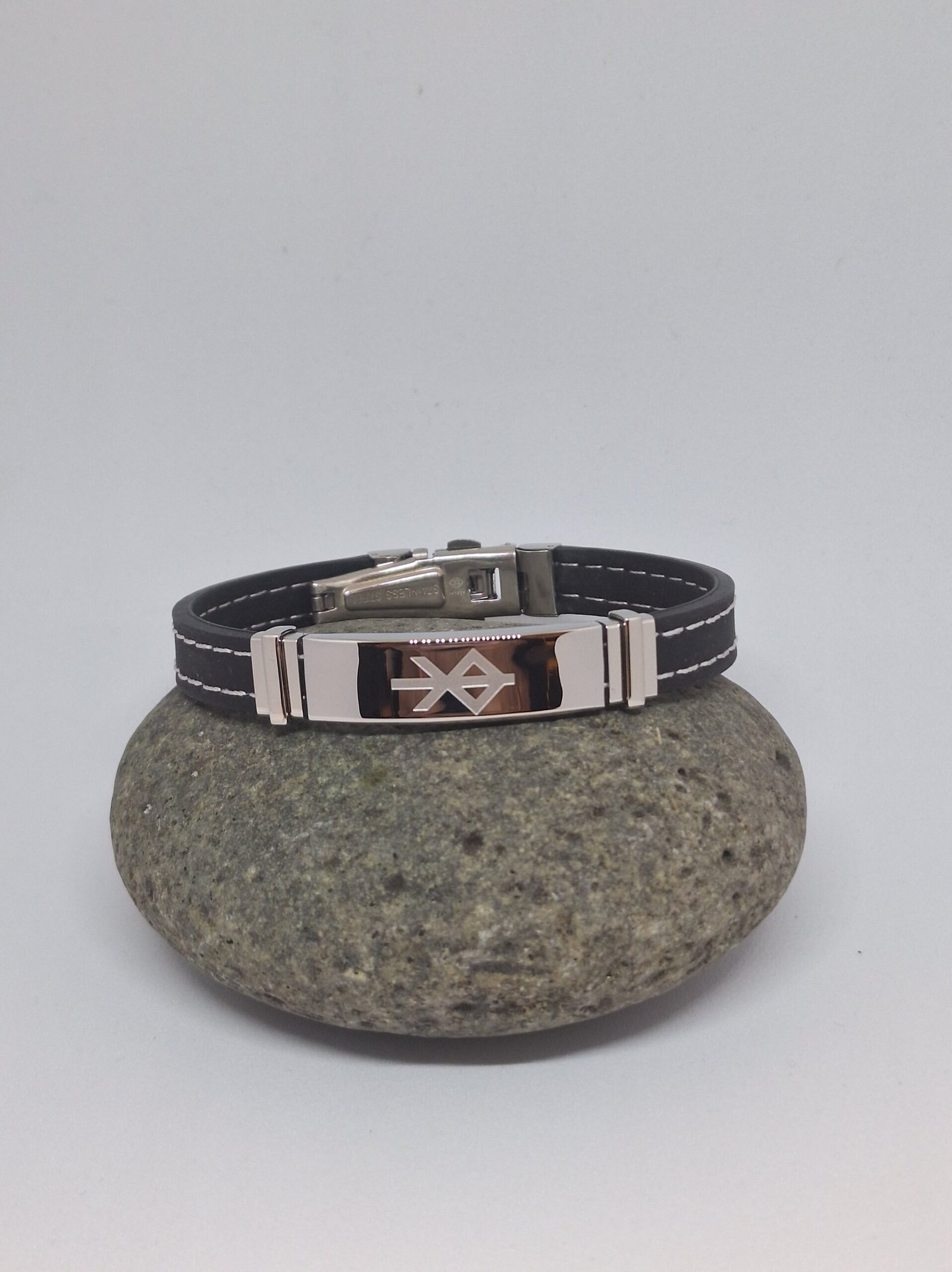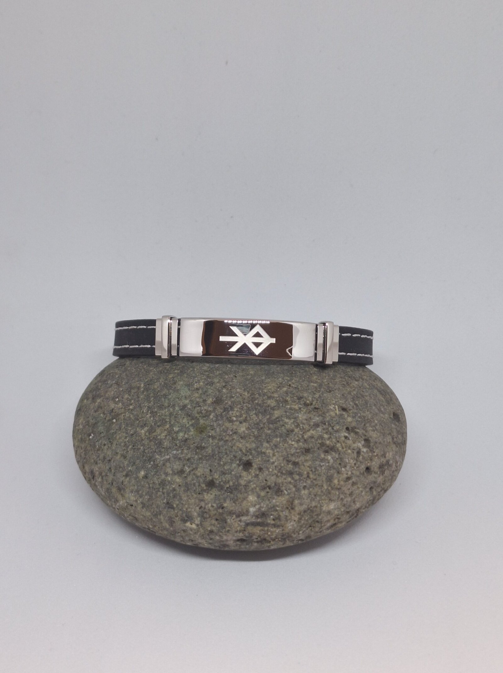 Ein Hjarta bindrúna er grava í hettar vakra armbandi, ið hevur ein rustfríða stál plátu og spenni og eina gummi reim ið kann styttast um tað er neyðugt.