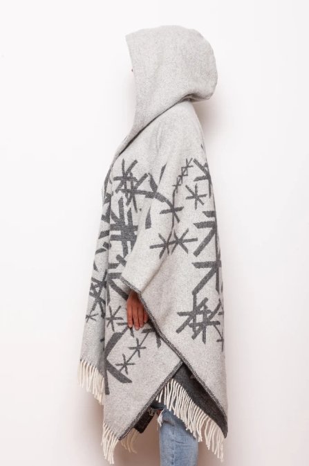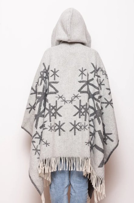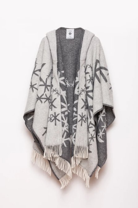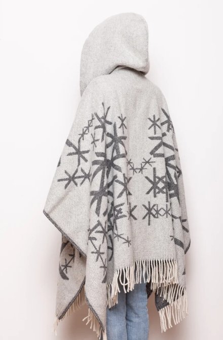 Vovið ú 100% há-góðsku Nýsælandskari ull, hesin myrka grái ull møtilin vísur fram symbolskar rúnu-kveikjandi mynstur ið umboða styrkið og verju.