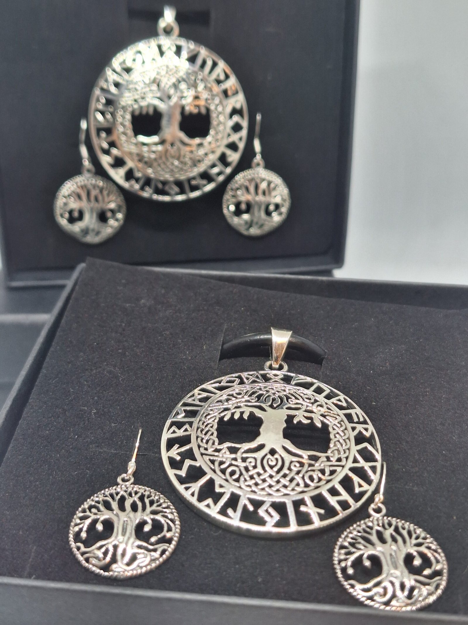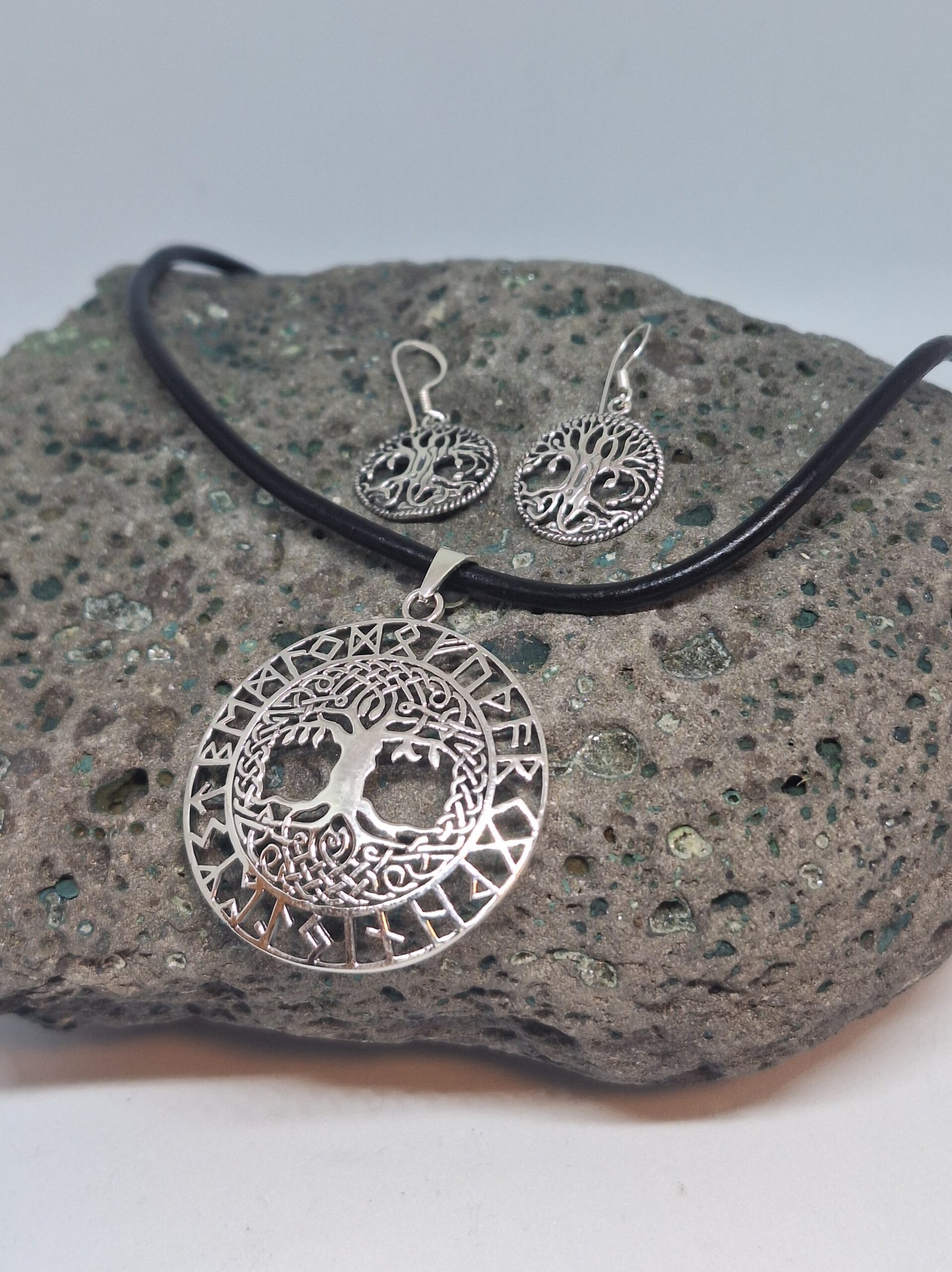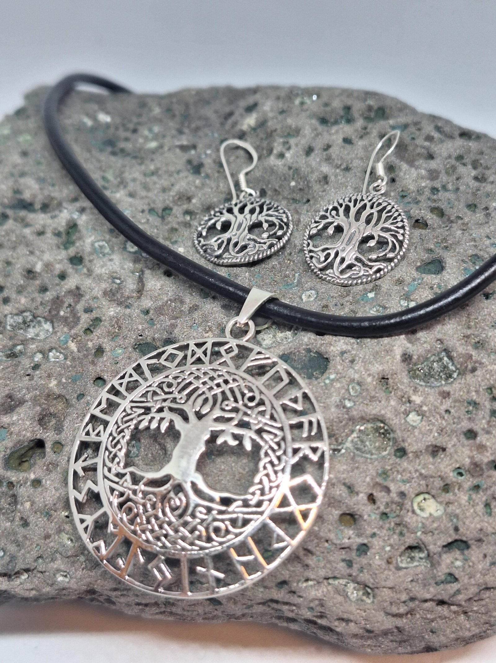 Gávusett við Yggdrasil oyralokkum og hálsprýði (Leður reim við 925S lás)